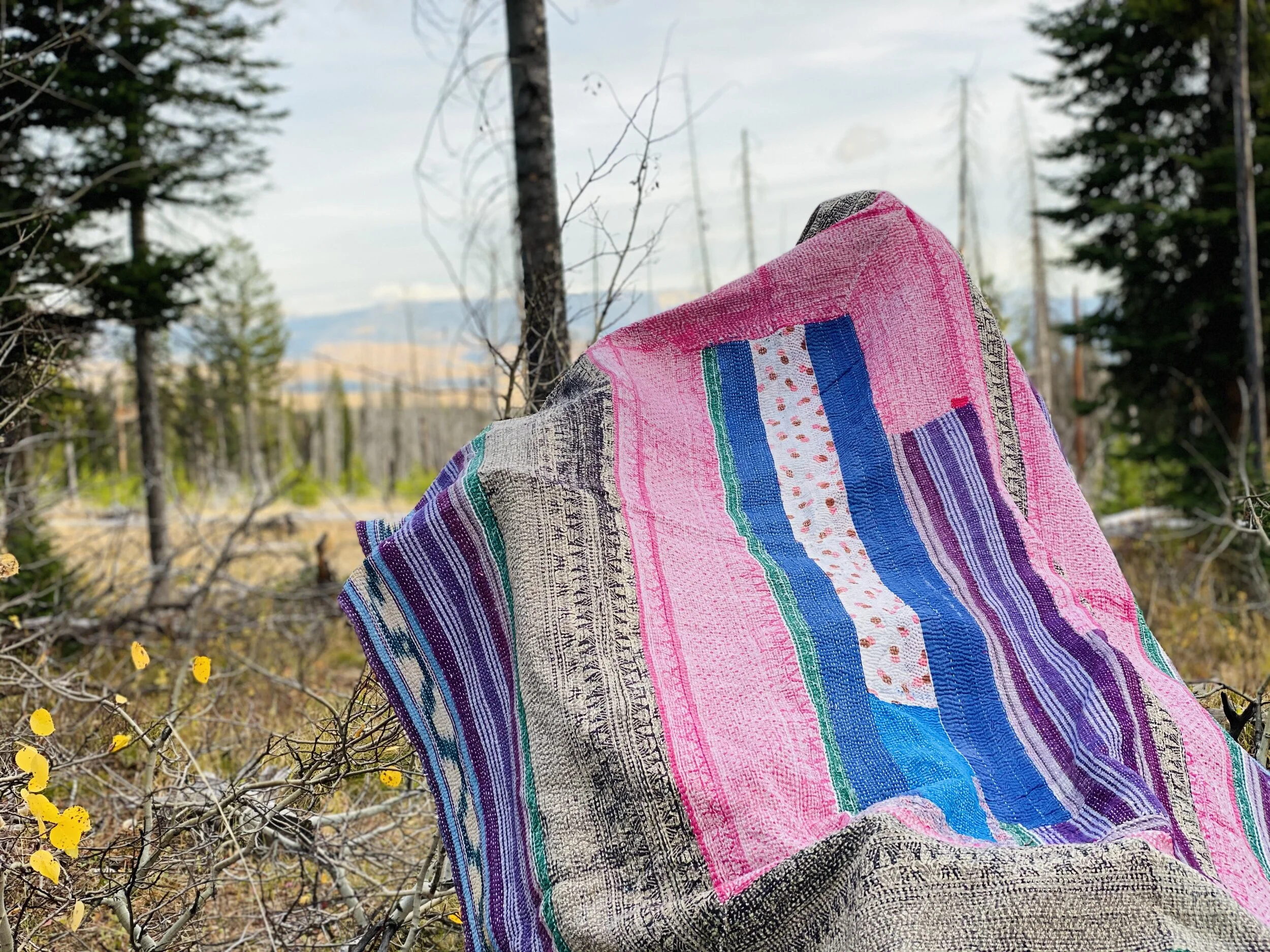 If you happen upon a kantha with particularly delicate stitching or very old weak fabric, it’s recommended to hand wash, to avoid the delicate fabric tearing or threads being pulled. If unsure, always hand wash.
